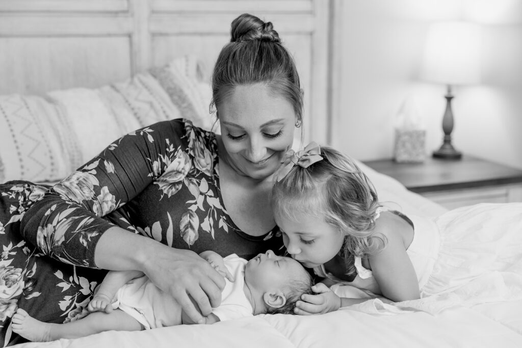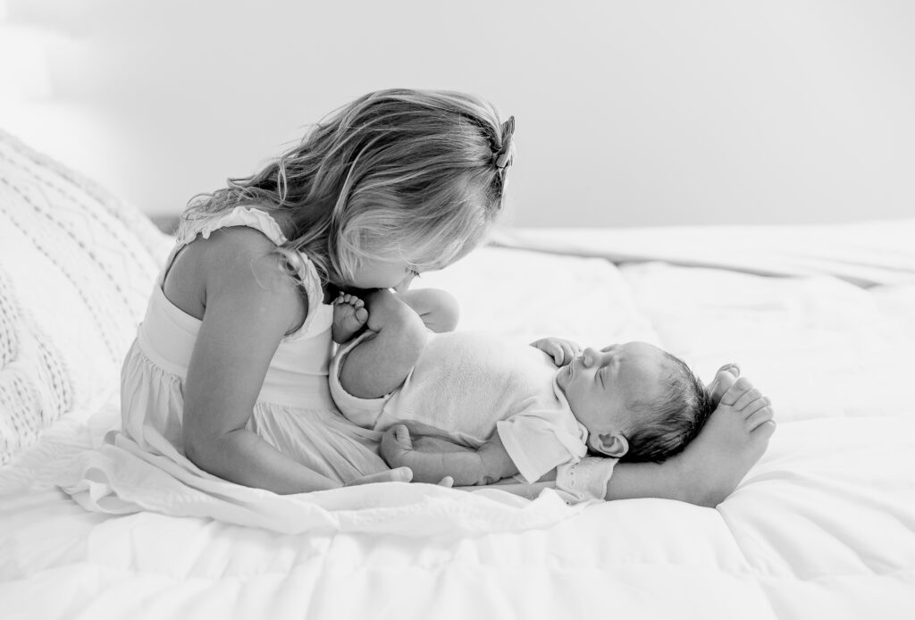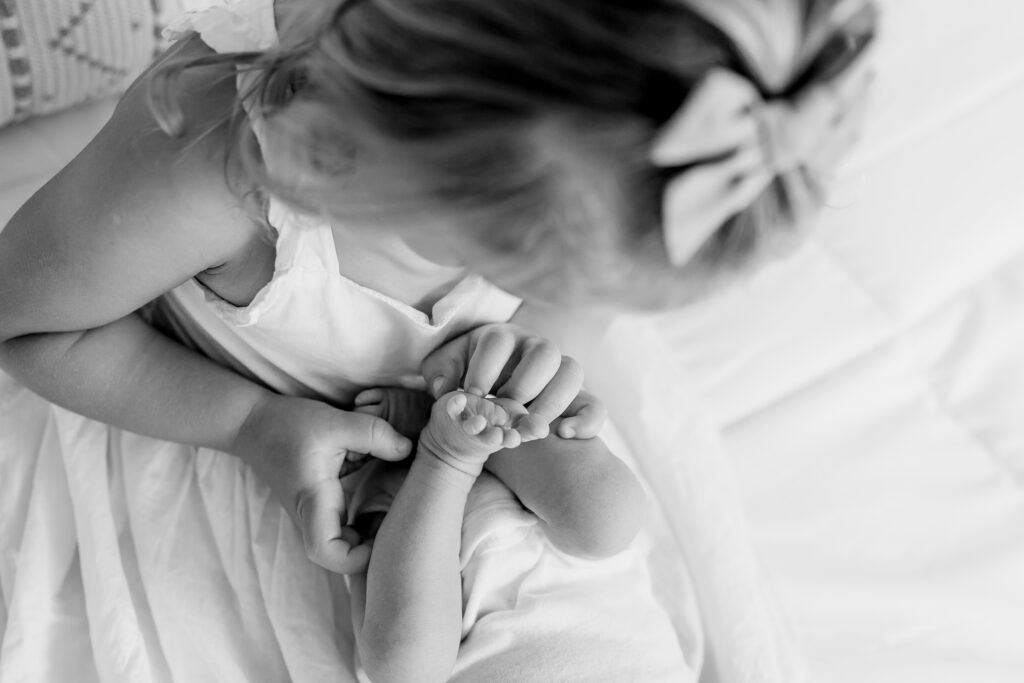 No matter which location you choose, newborn photos aren’t about perfection. They’re about freezing the fleeting beauty you’re living right now – sleepy grins, tiny toes, sibling squeezes (and maybe tickles), the way you instinctively reach for your baby without thinking. These are the images that become family treasures.