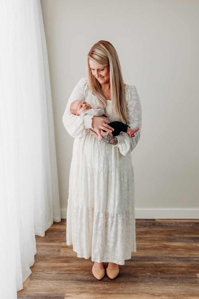 That said, in-home sessions can come with a bit more visual clutter. I always do a light sweep (clearing nightstands, hiding Amazon boxes) so you don’t have to worry about every corner looking Pinterest-perfect. But if your house doesn’t match the soft neutral vibe you want in your images, the studio might be a better fit.